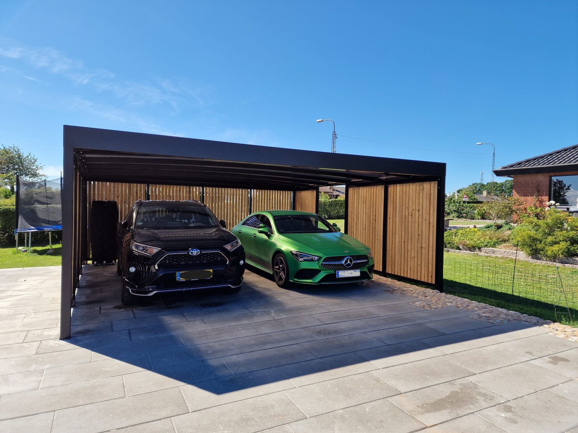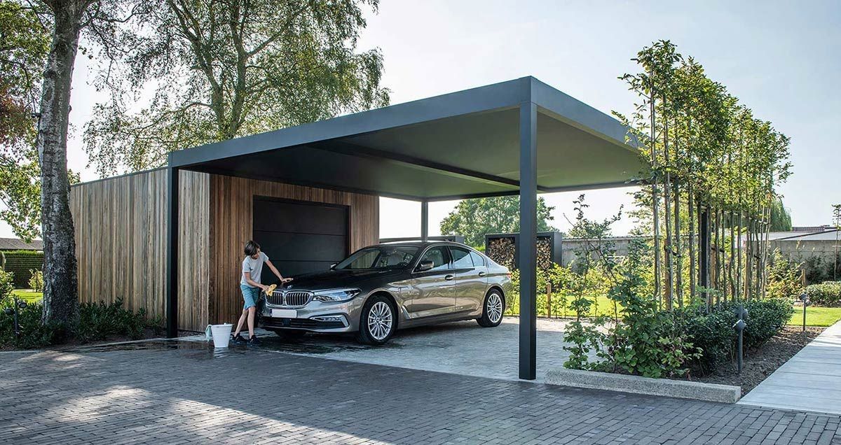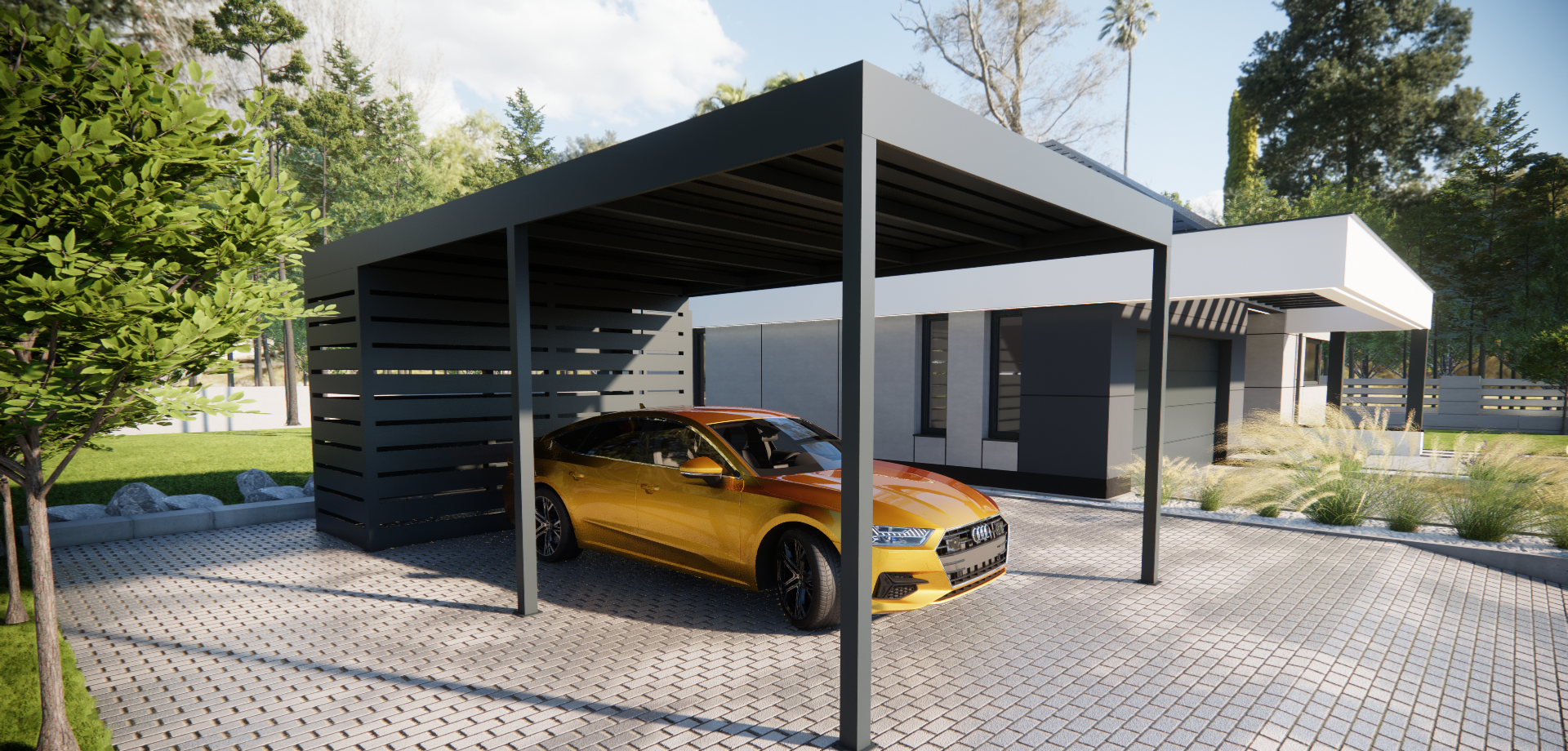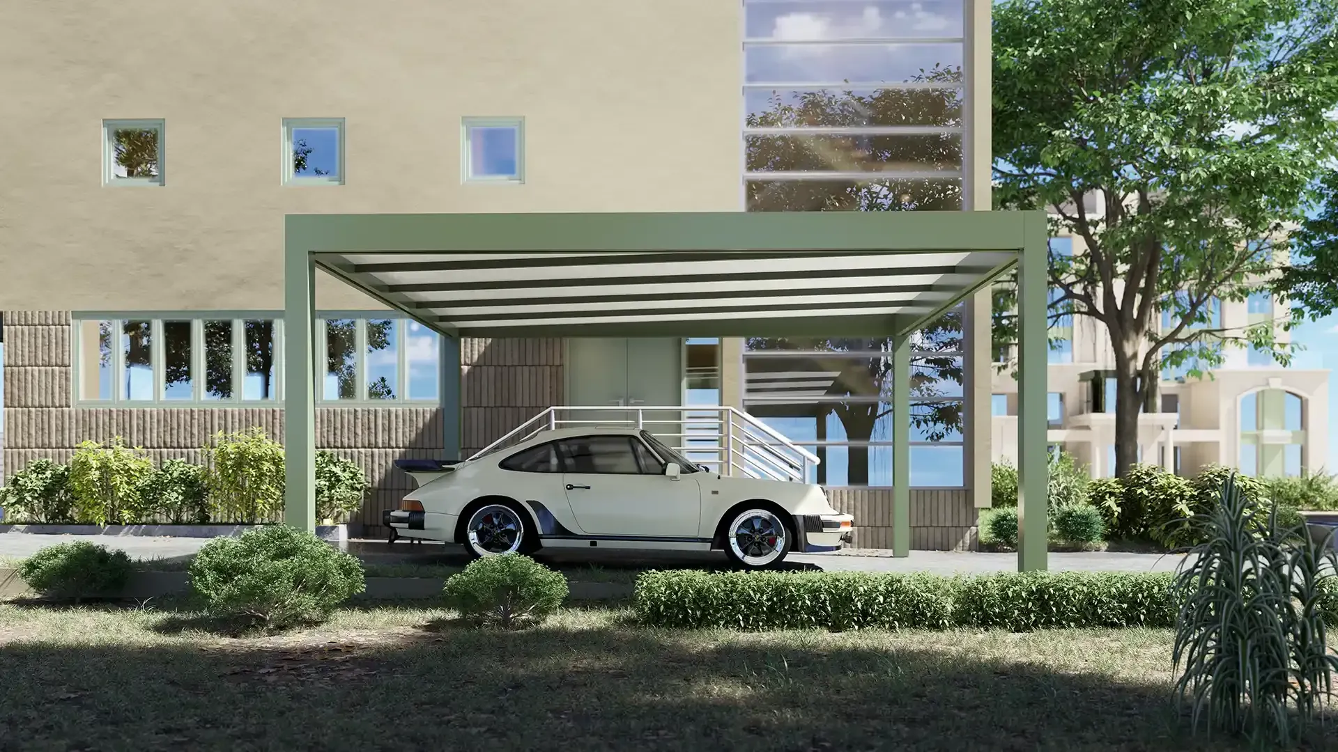 Strutture in acciaio zincato o alluminio verniciate a polvere. Copertura in pannelli coibentati, PVC triplo strato, vetro stratificato e policarbonato compatto.