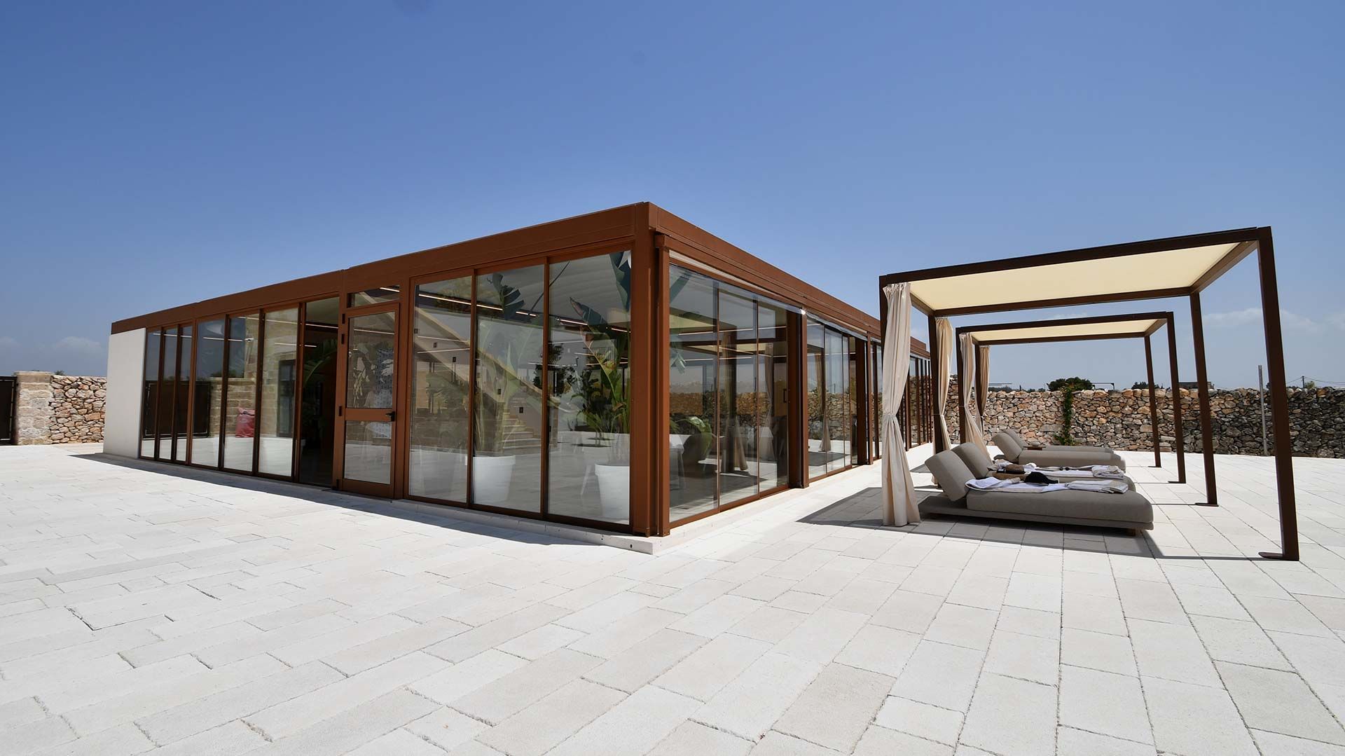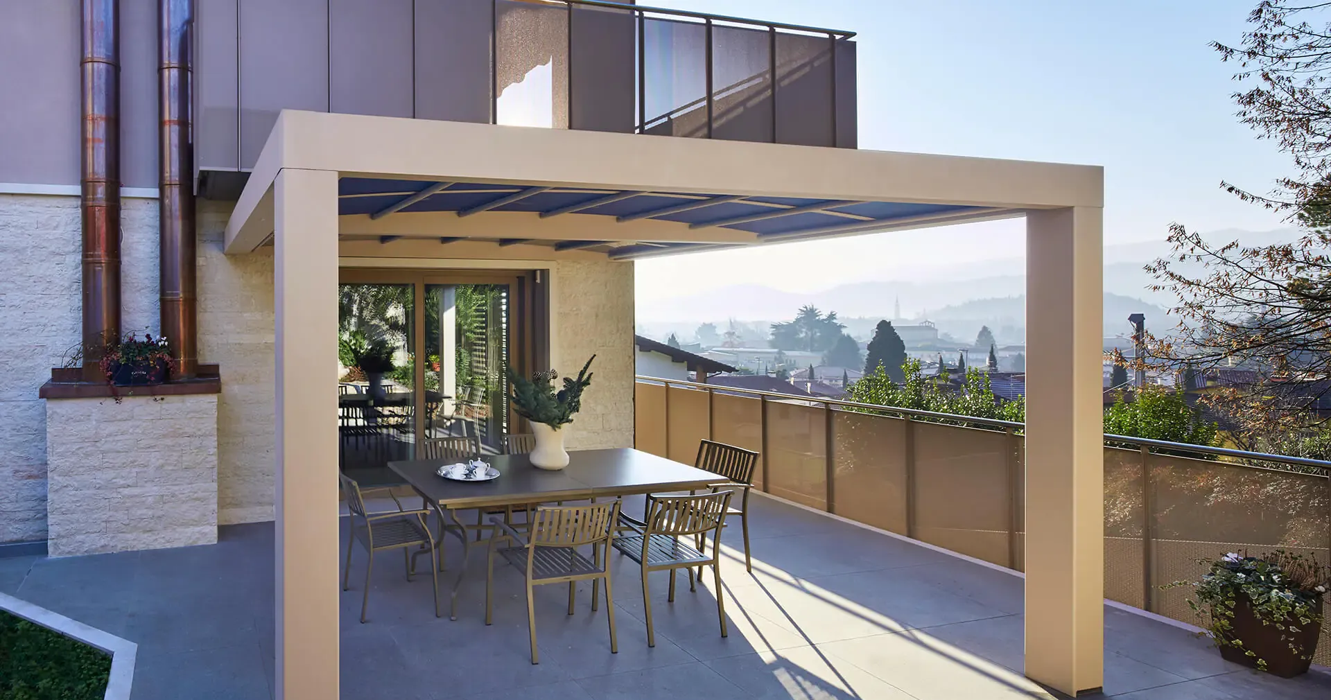 Le strutture si contraddistinguono per la linearità estetica, con la possibilità di inserire chiusure perimetrali e
